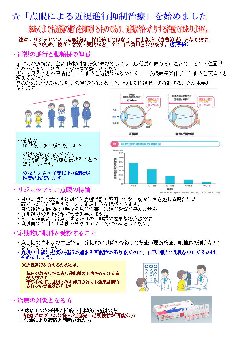 近視進行進行抑制治療(自費診療) 近視進行抑制点眼(リジュセア®)